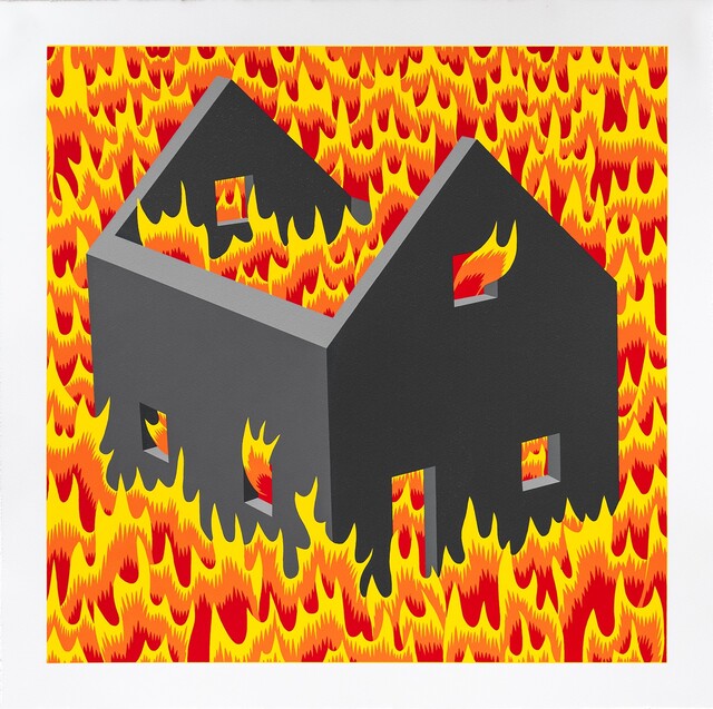 Dan Oliver's Our House is a sophisticated six layer screenprint produced in 2022 on premium Somerset Satin paper that showcases masterful technical precision. The multi layer process creates depth and visual richness through carefully considered color registration and transparency effects. Oliver's work explores themes of domesticity and personal space through an intricate printing methodology. The Somerset paper substrate enhances the vibrancy and longevity of the printed image. This piece represents contemporary printmaking at its most refined and deliberately crafted.