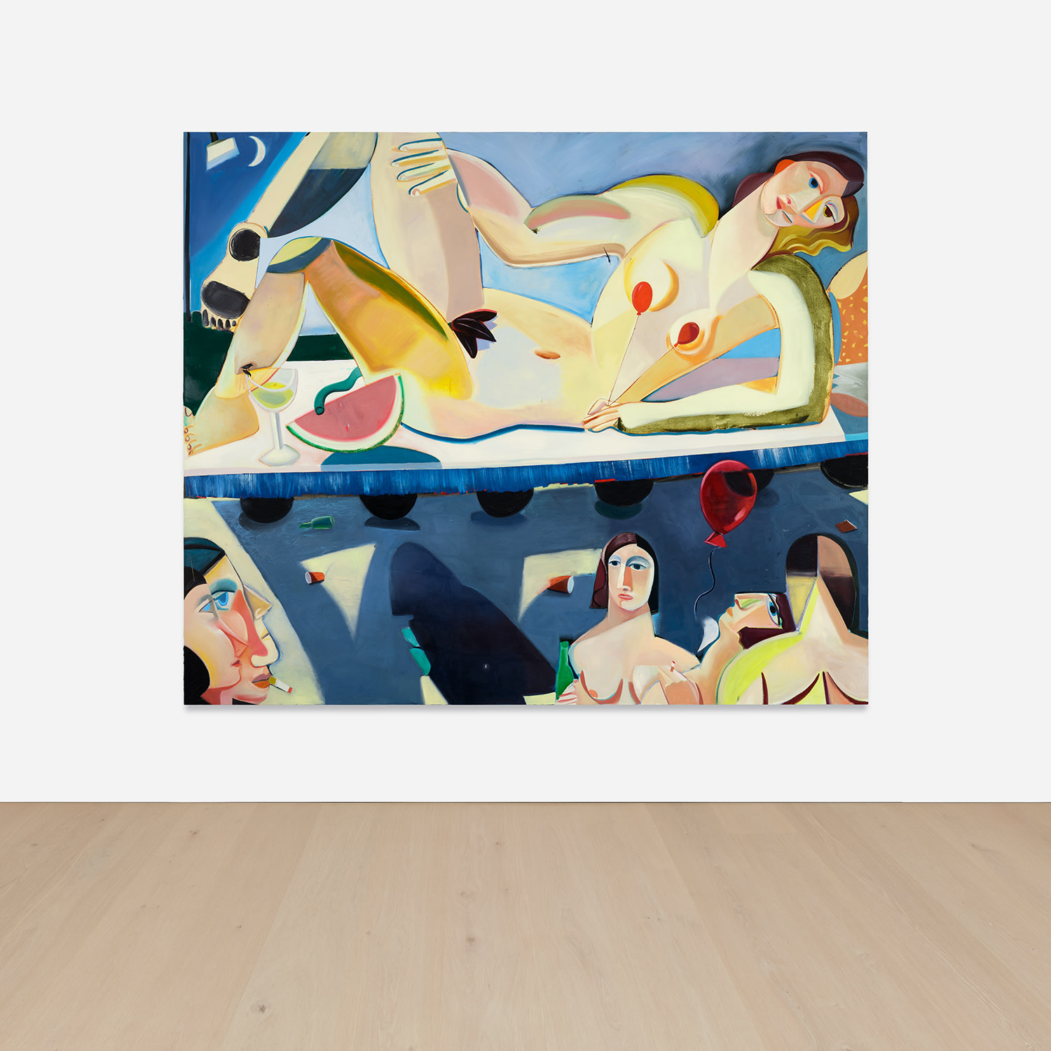 Danielle Orchard's 'Parade Float' is an oil on canvas painting created in 2019. The work explores themes of celebration and spectacle through the artist's contemporary painterly approach.