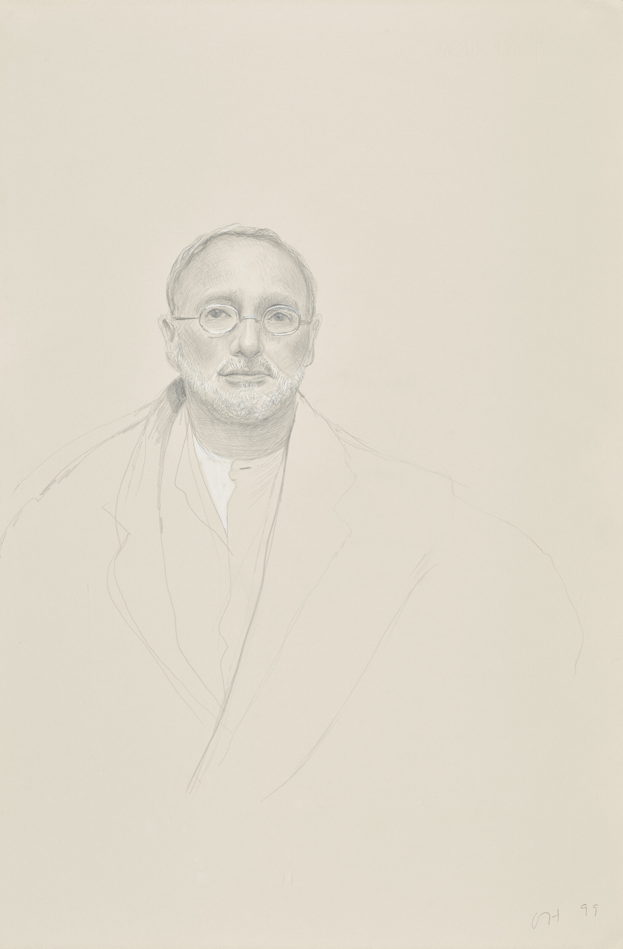 EXHIBITED Venice, California, L.A. Louver, David Hockney: Camera Lucida Drawings, July - August 2000. Conditions of sale Brought to you by Pippa Jacomb Director, Head of Day Sale PJACOMB@CHRISTIES.COM +44 (0) 20 7389 2293 LOT ESSAY David Hockney was fascinated by Renaissance and early modern portraiture. He suggested that many Old Masters used optical aids such as the camera obscura and camera lucida to achieve a striking degree of visual precision. Rather than seeing this as deceptive, he believed that such tools simply offered artists another way of seeing, without diminishing the skill required to translate fleeting projections into fully realised images. This idea emphasises that art has always involved technology, craft, and material experimentation. The detail seen in Robert Littman, Los Angeles, 3 September 1999 recalls the Renaissance examples Hockney studied, particularly the forensic realism of Jan van Eyck. The camera lucida, a small prism that superimposes an optical trace onto the paper, fascinated Hockney for its ability to register quick coordinates of a face before the image vanished. He wrote of the device: 'you must use it quickly, for once the eye has moved the image is really lost. A skilled artist could make quick notations, marking the key points of the subject’s features … after these notations have been made, the hard work begins of observing from life and translating the marks into a more complete form'. This understanding of the technique helps illuminate the quick yet assured strokes that define the contours of this present portrait, positioning the work as both an homage to classical art history and a distinctly modern exploration of portraiture.