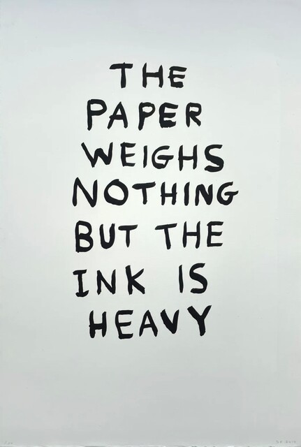 This 2014 lithograph explores themes of weightlessness and materiality through both its title and visual language. Shrigley employs the lithographic process to create layered, textured compositions that belie the titular concept of weightlessness. The work investigates the relationship between physical presence and absence, substance and void. The medium's capacity for tonal gradation allows for subtle explorations of light and shadow. The piece represents Shrigley's continued investigation of language and image relationships within fine art printmaking.