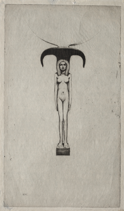 Mysterious title hints at symbolic meaning while Cameron's etching technique transforms Egyptian architecture into a meditation on reflection and cultural encounter.