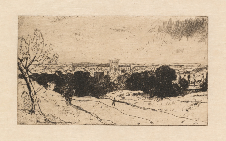 Sweeping vista demonstrates Cameron's skill at architectural landscape, using precise etching techniques to render the historic English cathedral city from an elevated perspective.