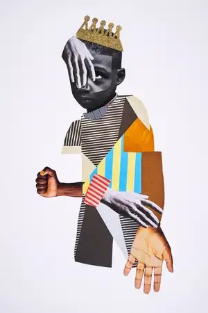 "The Front Lines" by Deborah Roberts is a mixed media work combining pigment print, collage, and gold glitter that explores themes of identity and representation through the artist's characteristic layering of photographic imagery with gestural mark making. Created in 2018 and published by Art & Culture Projects on archival Hahnemühle paper, the work measures 756 by 508 millimeters and is part of a limited edition of 25 prints. Roberts's practice often interrogates constructions of beauty, race, and childhood through the juxtaposition of found imagery and painterly intervention, making this work a significant example of her broader artistic investigation into how visual culture shapes perception and self representation.
