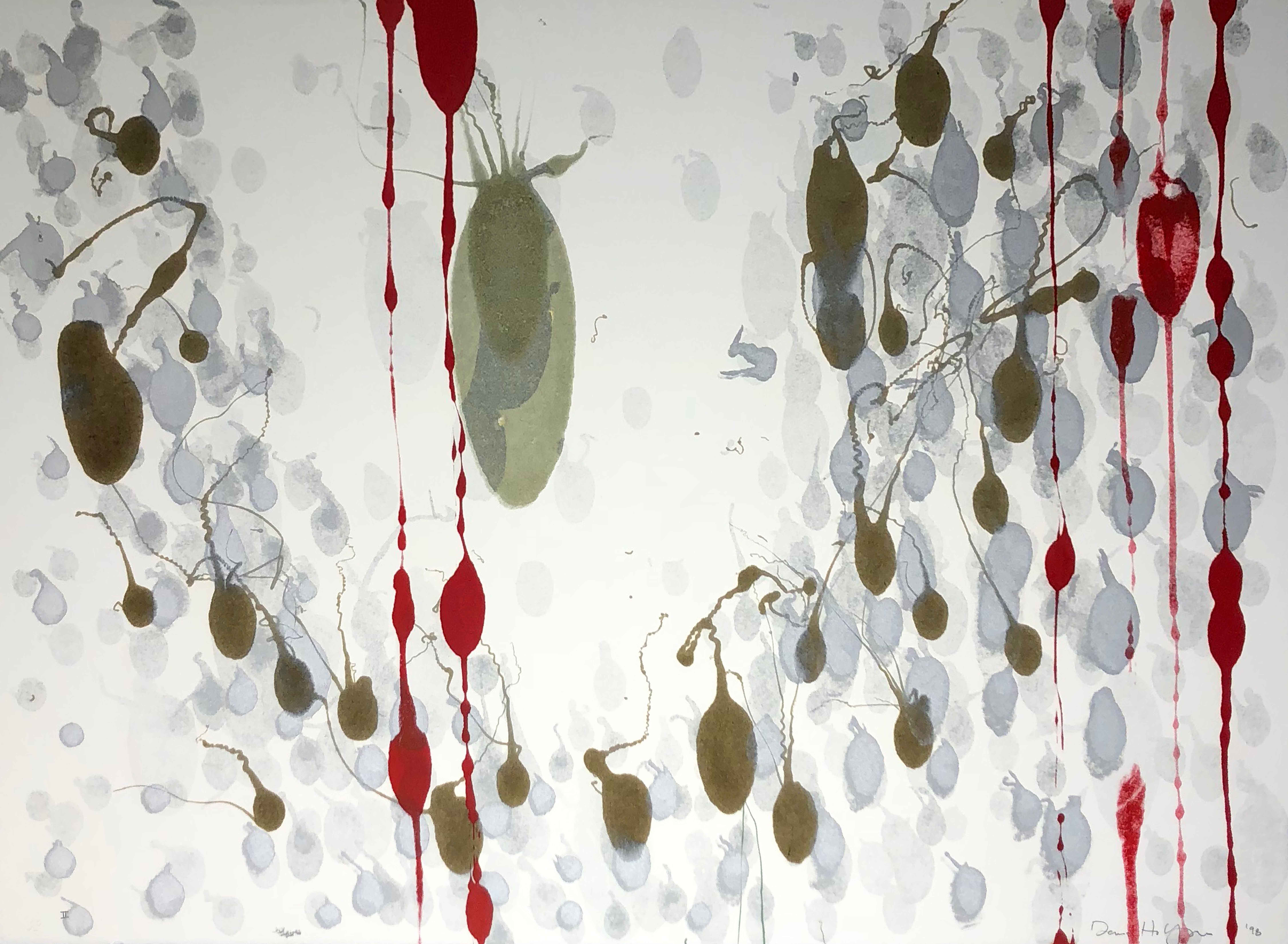 This 1998 monotype demonstrates Hollingsworth's exploration of the medium's unique capacity for spontaneous mark-making and textural experimentation. The work exemplifies his interest in process-driven abstraction, where the unpredictable nature of the monotype technique becomes integral to the composition's expressive quality.