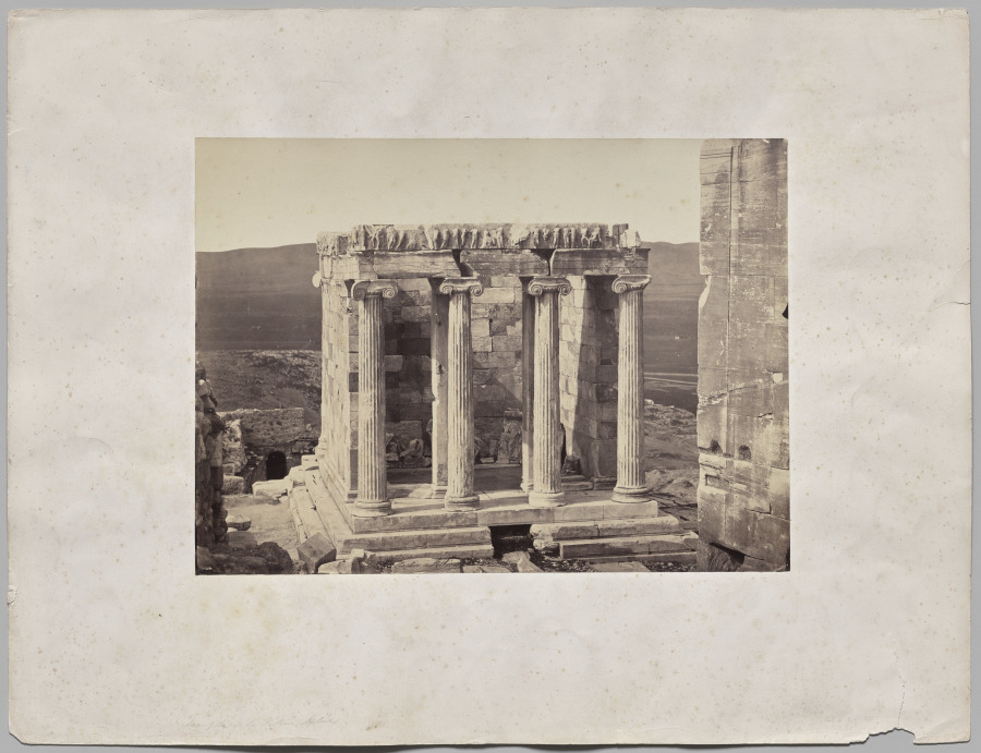 Captured during the early years of photography, this albumen print documents the ancient Greek temple through the precise collodion negative process, preserving architectural details with remarkable clarity for its era.