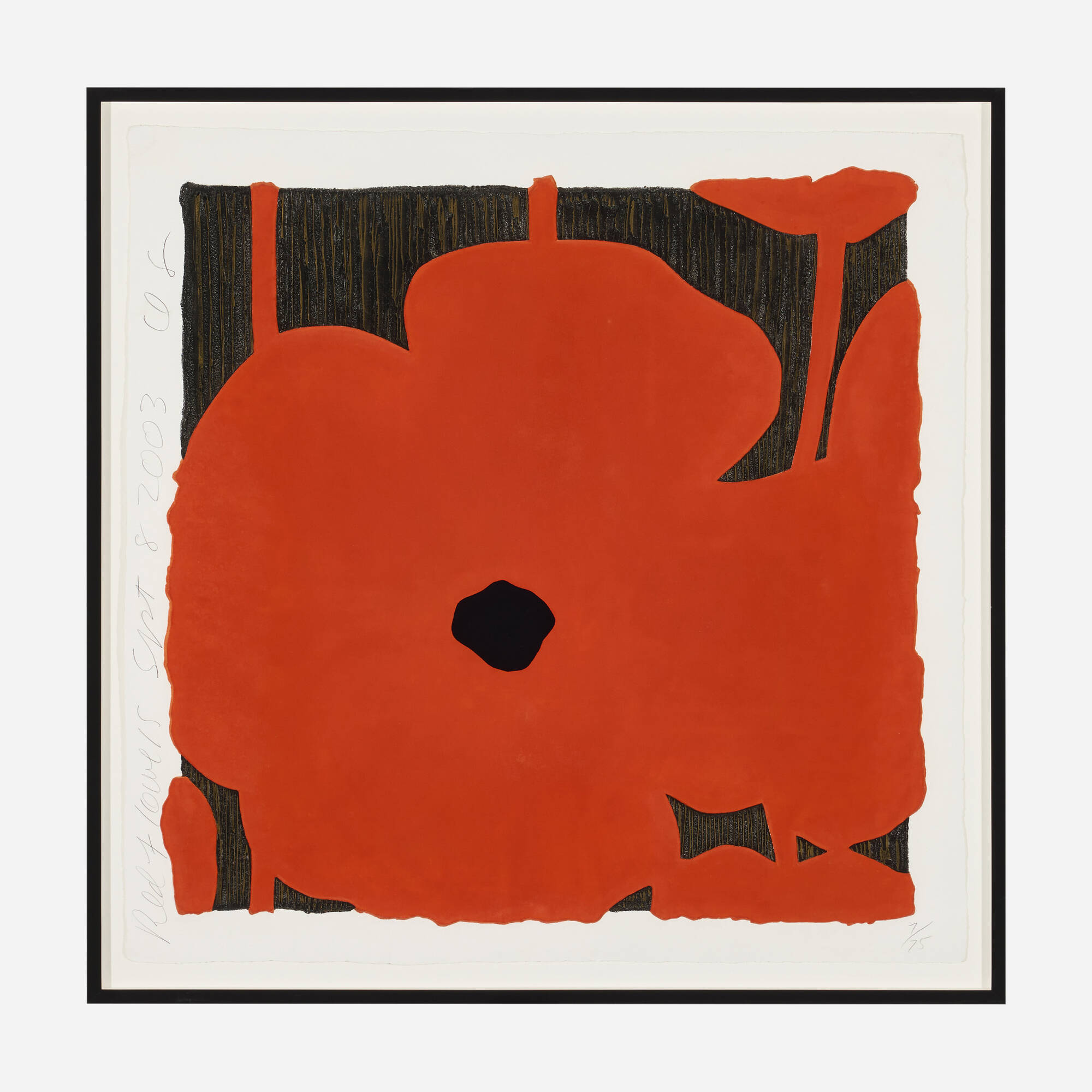 Signed, titled and dated to left and lower edges ‘Red Flowers Spt 8 2003 DS 7/75’. This work is number 7 from the edition of 75 printed and published by Mixografía, Los Angeles.