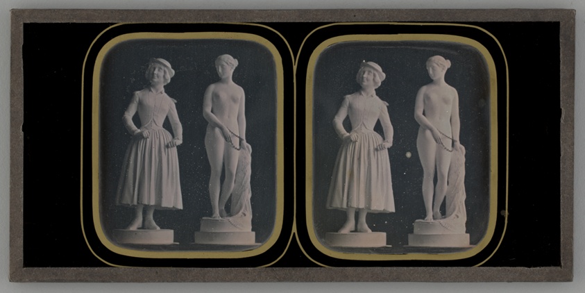 Employing the daguerreotype's mirror-like surface, this study of classical sculptures showcases the medium's ability to render fine sculptural details with metallic precision.