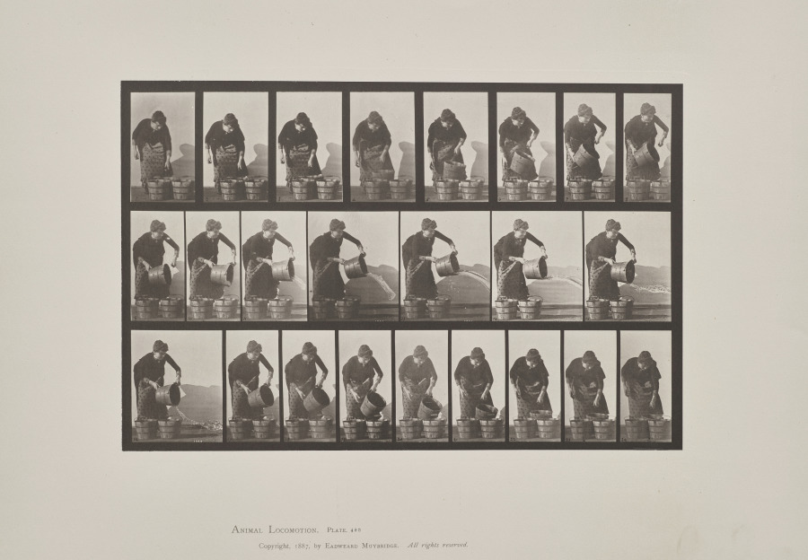 Part of Muybridge's revolutionary motion studies, this collotype freezes a mundane action to reveal the precise mechanics of human movement invisible to the naked eye.