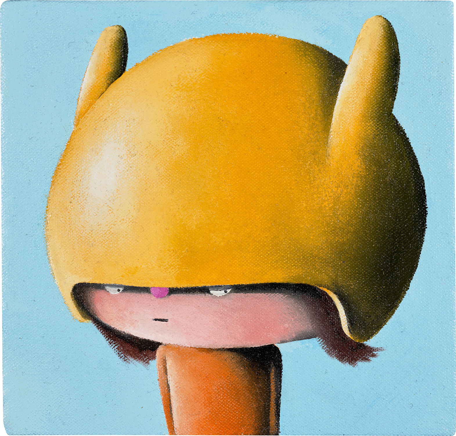 Edgar Plans' mixed-media composition on canvas featuring a figure or character in motion or contemplation. This 2021 work combines various materials to create a contemporary visual narrative.