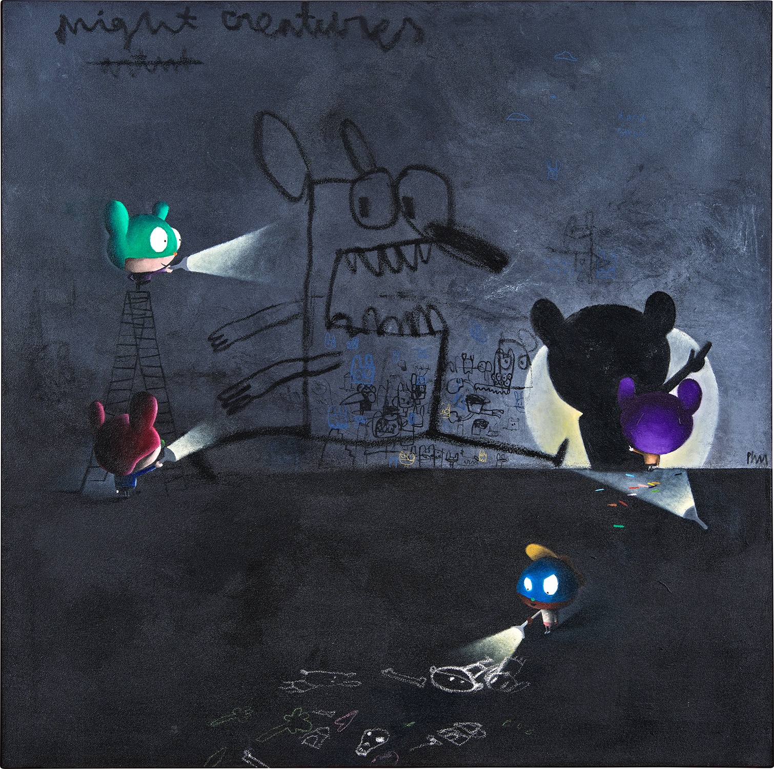 Edgar Plans' 'Night Creatures' from 2019 is an oil on canvas work exploring nocturnal themes and imagery. The painting reflects Plans' contemporary approach to figurative and atmospheric representation.
