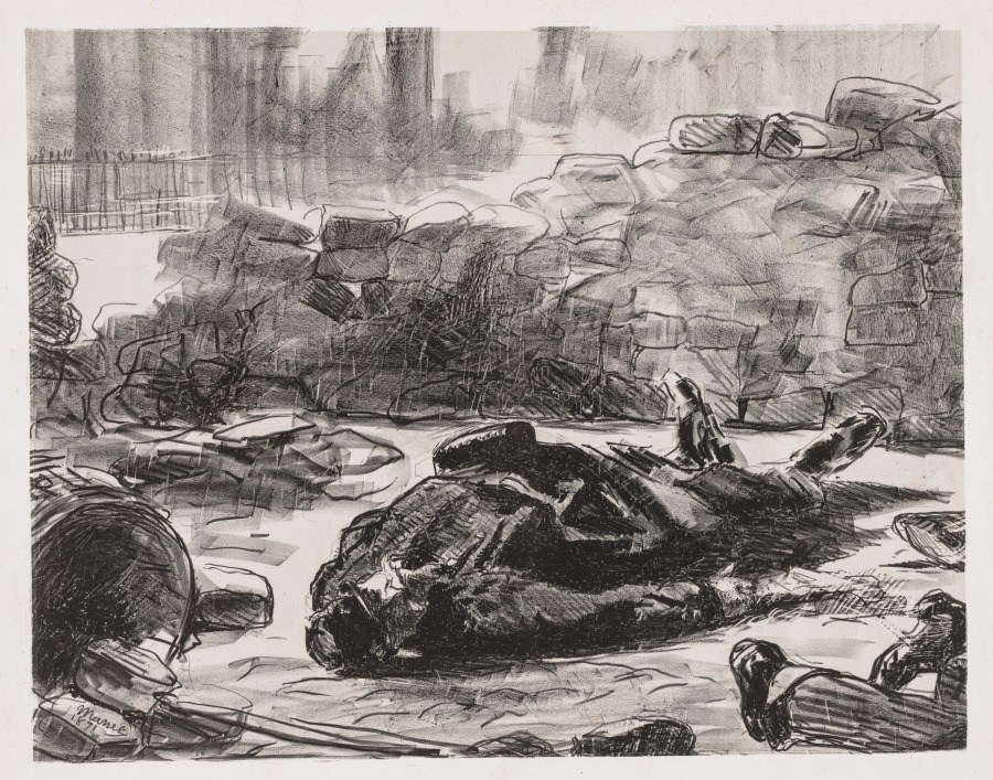 Capturing the violence and chaos of the Paris Commune's brutal suppression, this lithograph demonstrates Manet's commitment to documenting contemporary political events with unflinching realism.