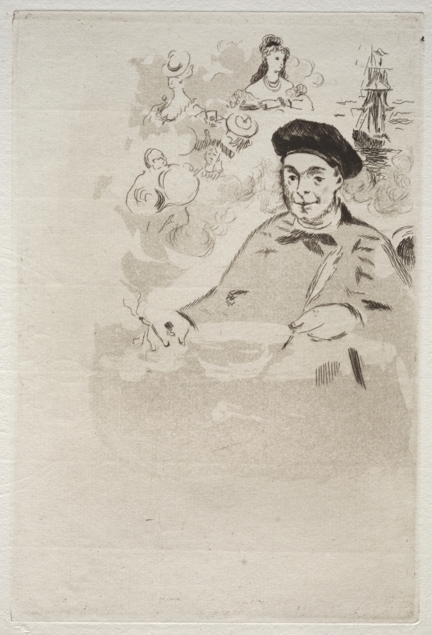 Commissioned to illustrate the poet's work, this frontispiece reveals Manet's ability to synthesize literary themes with his distinctive visual vocabulary through masterful printmaking techniques.