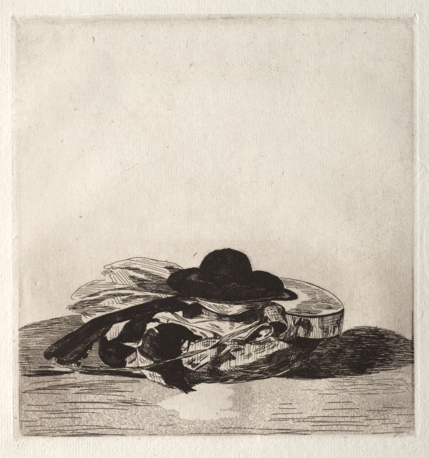Created as an introductory image for a portfolio of prints, this still life arrangement demonstrates Manet's sophisticated use of multiple etching techniques to achieve rich tonal effects.