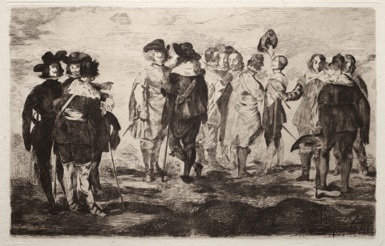 Among Manet's earliest etchings, this work after Velázquez reveals his deep admiration for Spanish masters and his growing confidence in printmaking techniques.