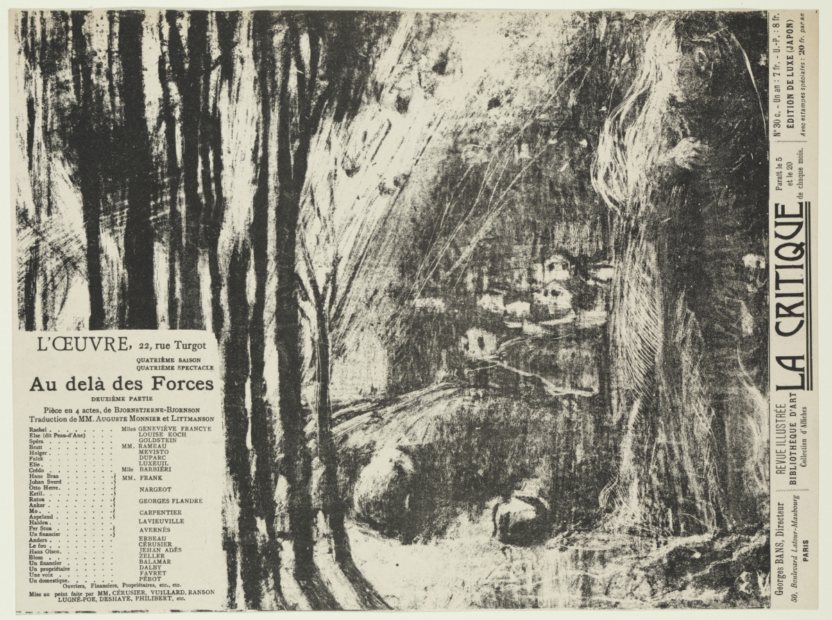 Created as promotional material for Bjørnson's symbolist drama, this lithograph demonstrates Vuillard's involvement in the theatrical avant-garde and his ability to translate dramatic themes into visual art.