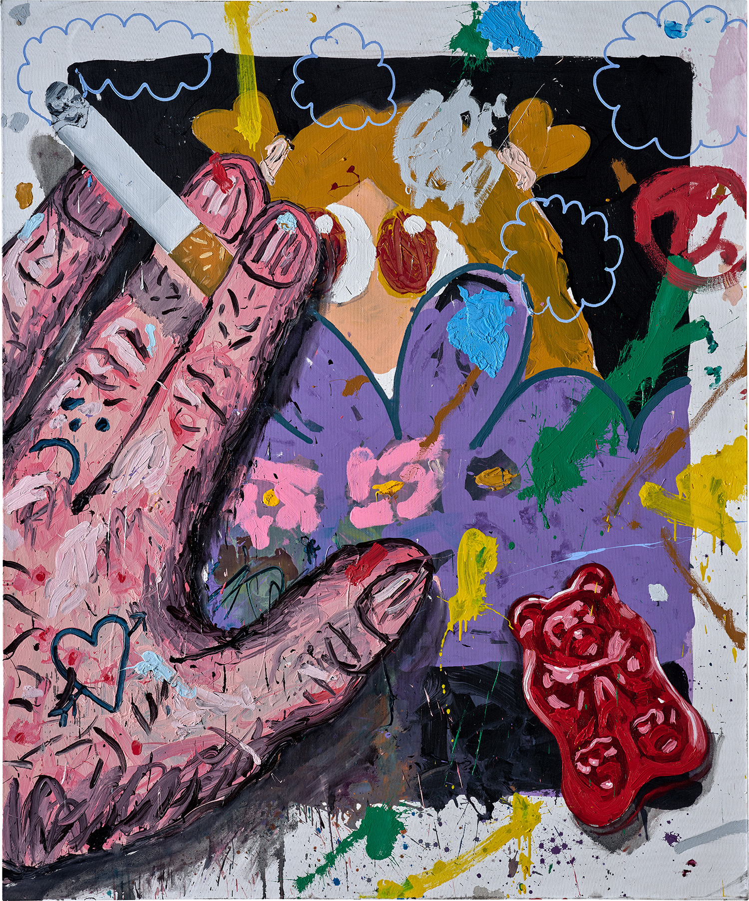 Edu Carrillo's 'Painter Smoking' is a 2022 acrylic and oil on canvas work that explores figurative subject matter through mixed media techniques. The composition captures a candid moment with expressive brushwork and layered pigments.