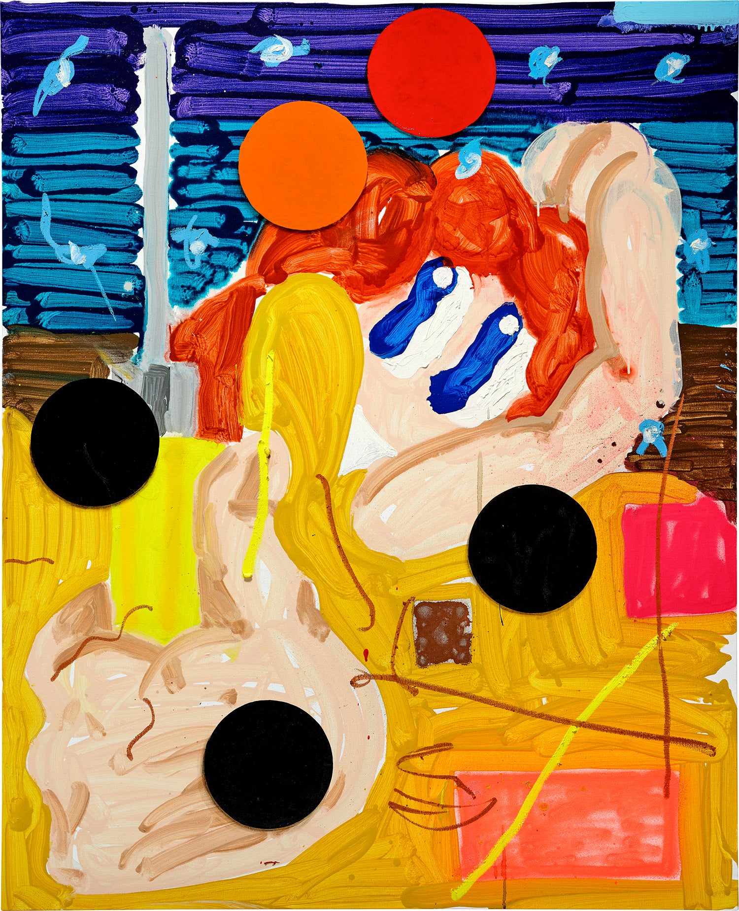 - acrylic, oil, oil stick, enamel and spray paint on linen