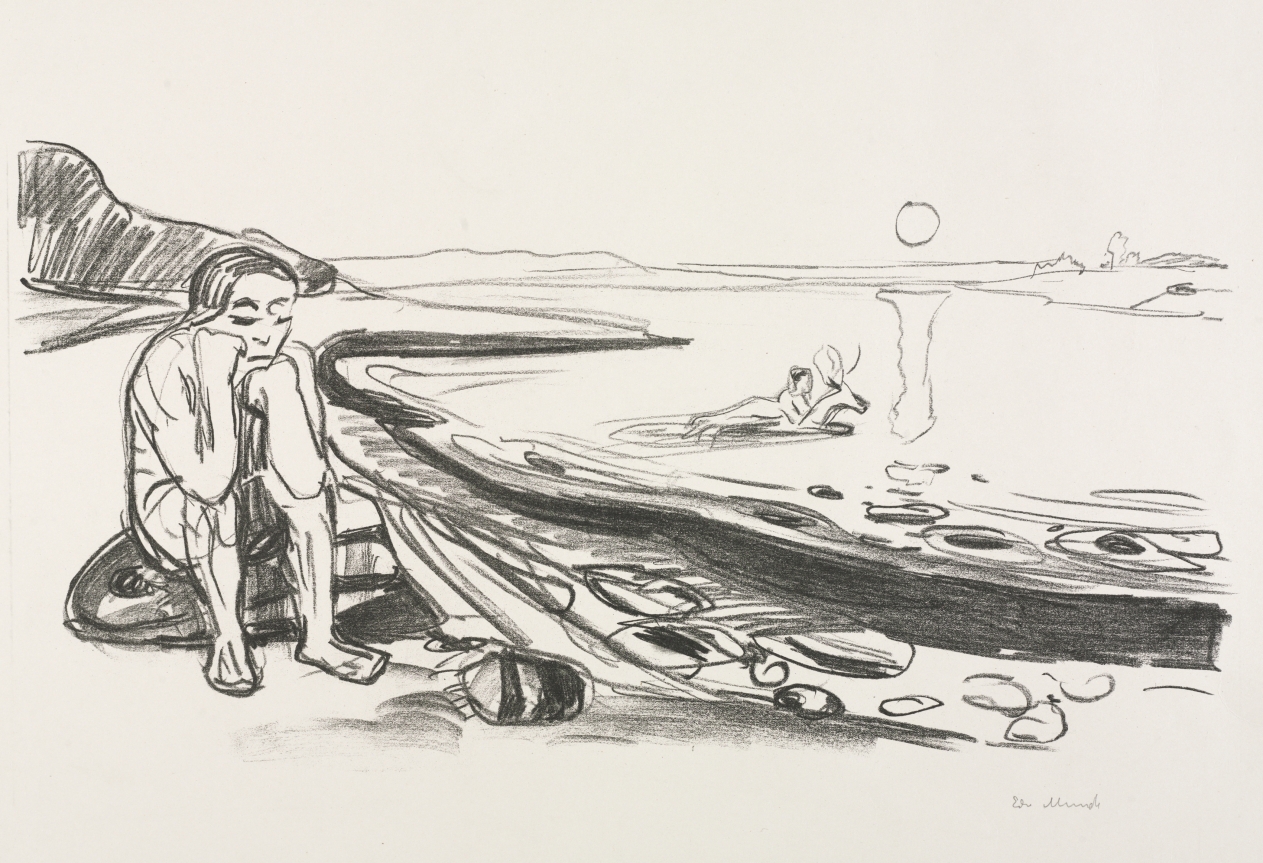 From Munch's ambitious Alpha and Omega series exploring themes of love and betrayal, this lithograph combines the artist's symbolist narrative interests with his bold graphic style.