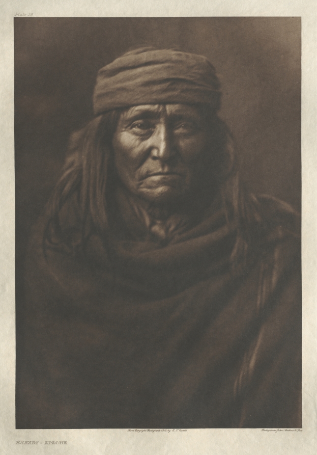 Among the earliest photographs in Curtis's 30-year project, this portrait of an Apache individual establishes the formal and tonal qualities that would define his massive undertaking to document Native American life.