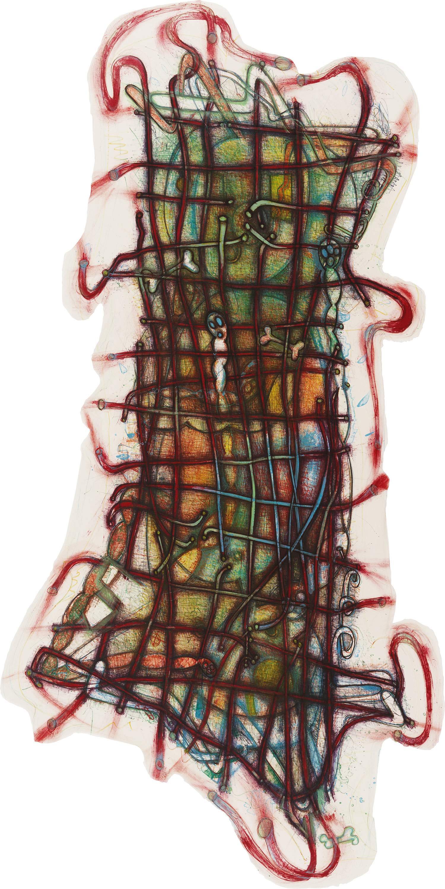 Elizabeth Murray's "Wiggle Manhattan" is a vibrant lithograph in colors that exemplifies her playful approach to abstraction and urban imagery. The work is printed on shaped handmade Torinoko paper, which Murray employed to extend the composition beyond conventional rectangular formats and reinforce the dynamic, gestural quality of the piece. The irregular contours of the paper support echo the energetic mark making and bold color relationships that characterize Murray's distinctive artistic practice.