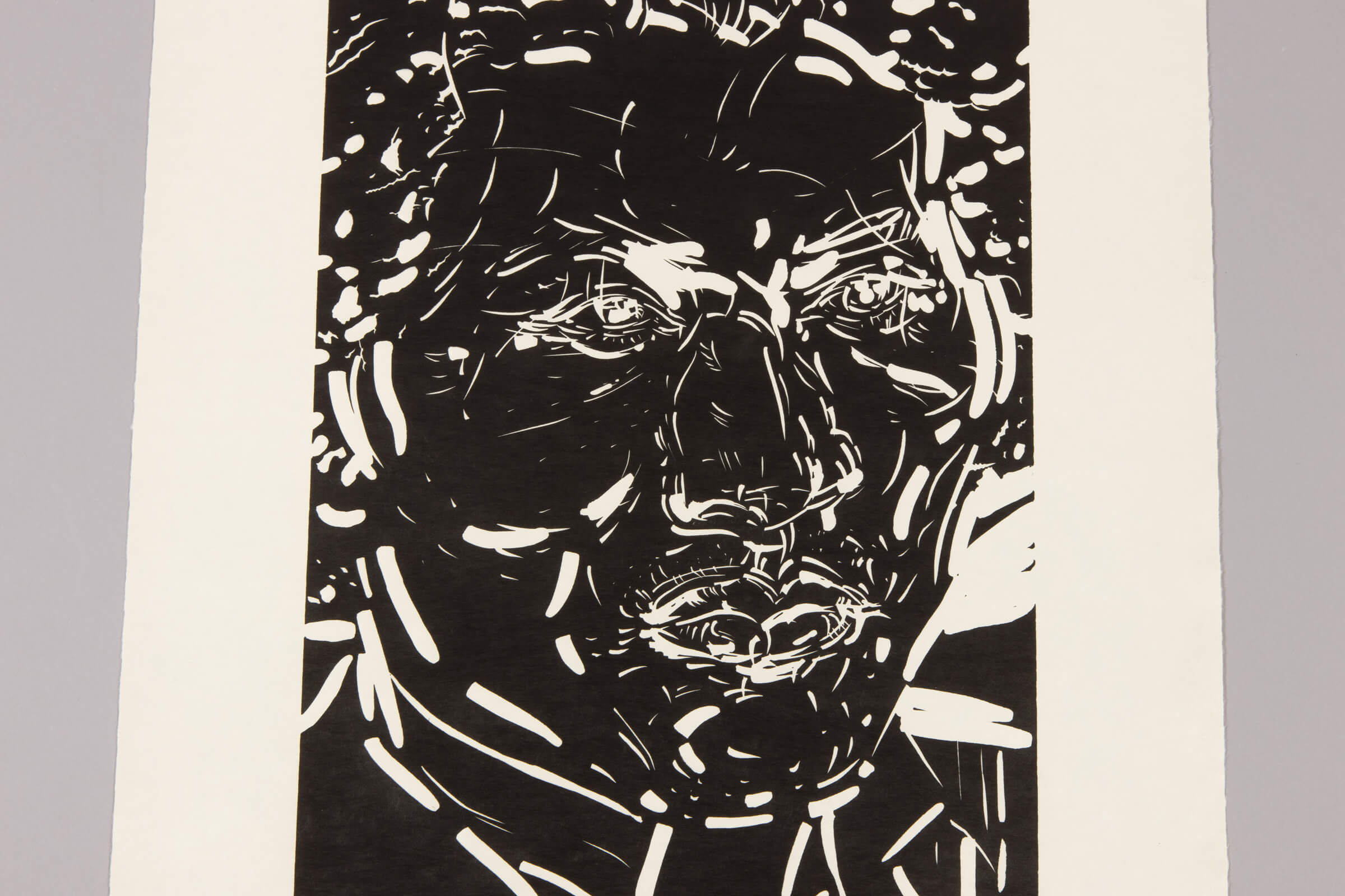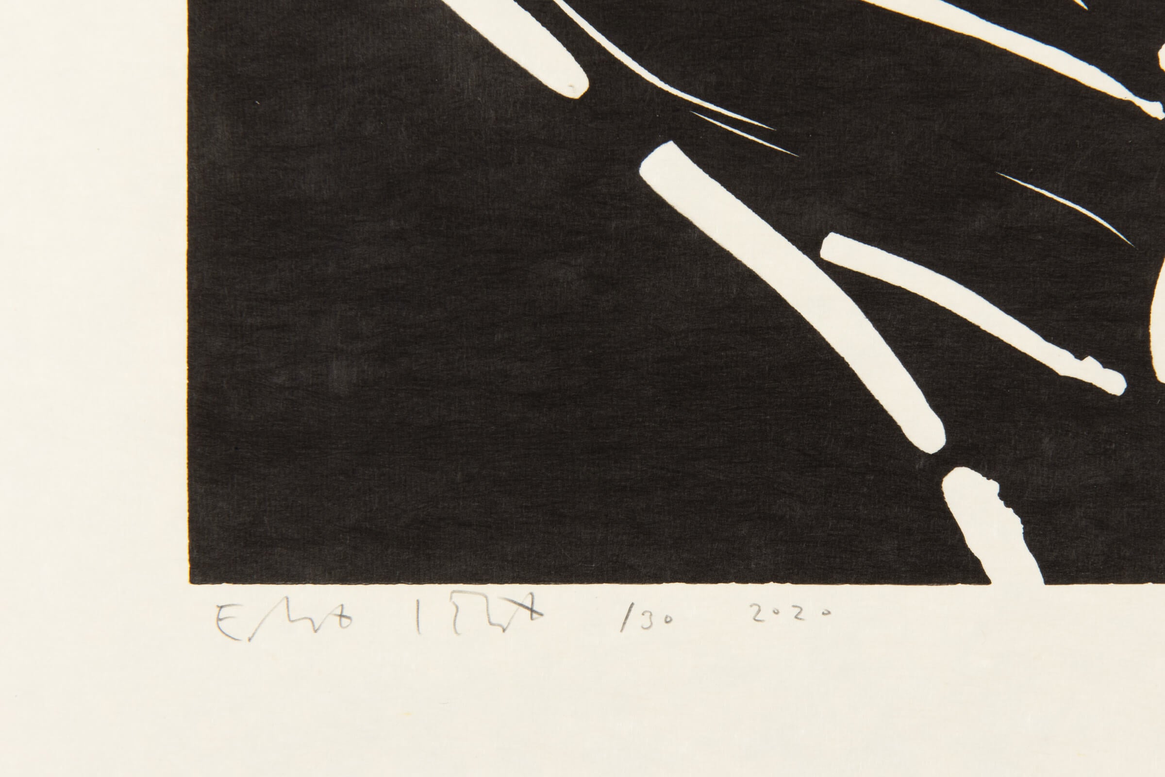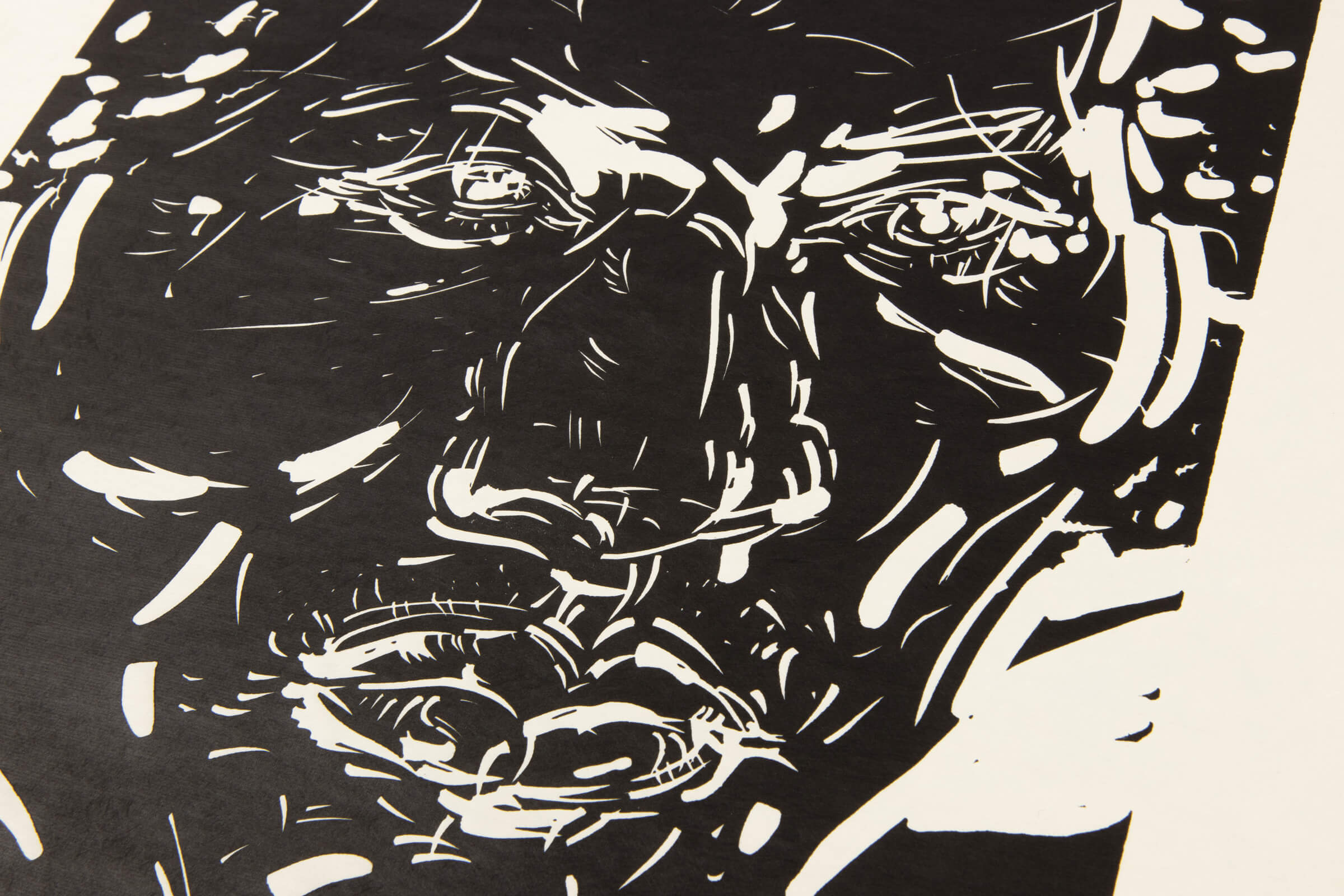 Elizabeth Peyton ’s Frederick Douglass (2023) is an original linocut print on delicate Japan paper, created in a limited edition of 30. Each limited edition print is hand-signed, titled, numbered, and dated by the artist. Known for her portraits of cultural and historical figures, Peyton brings her signature intimacy and sensitivity to this depiction of the famous 19th-century abolitionist and orator. The bold black-and-white composition emphasizes both strength and presence, while retaining the fluid, expressive qualities that define her fine art prints . Collectors of political art will value this art edition as a significant example of Peyton’s ability to connect past and present through portraiture.