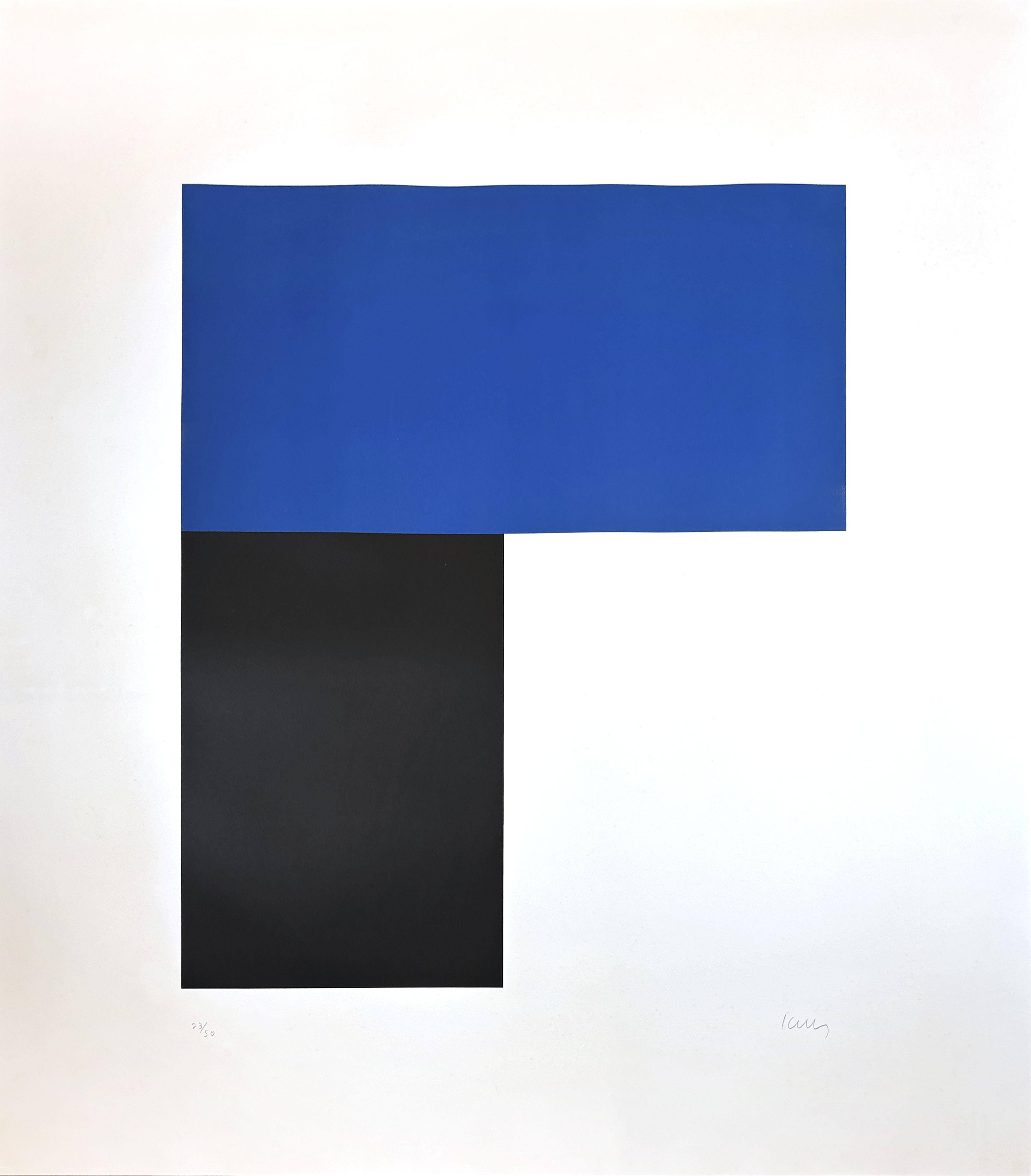This lithograph exemplifies Kelly's mastery of hard-edge abstraction through the stark juxtaposition of two geometric color fields, demonstrating his signature reduction of form to its essential elements. The work showcases the artist's exploration of color relationships and spatial tension within the confines of printmaking's technical precision.