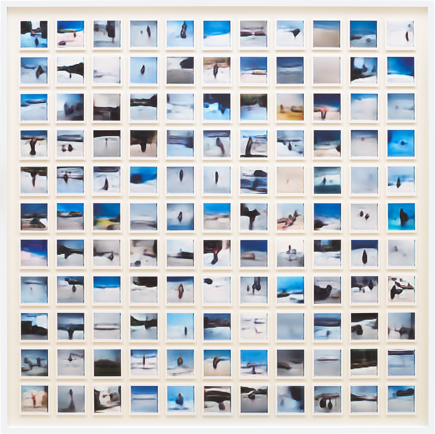 In this work from his alignDRAW series, Elman Mansimov captures an AI-generated vision of a solitary figure skiing across a vast, snow-covered mountain landscape, rendered through an early text-to-image generative process. Produced in 2015, the piece reflects a pioneering moment in machine learning and visual art, where written language was translated directly into imagery by an artificial neural network. Presented as an archival pigment print in the artist's own frame, the work bridges the conceptual boundaries between human instruction, computational interpretation, and artistic authorship.