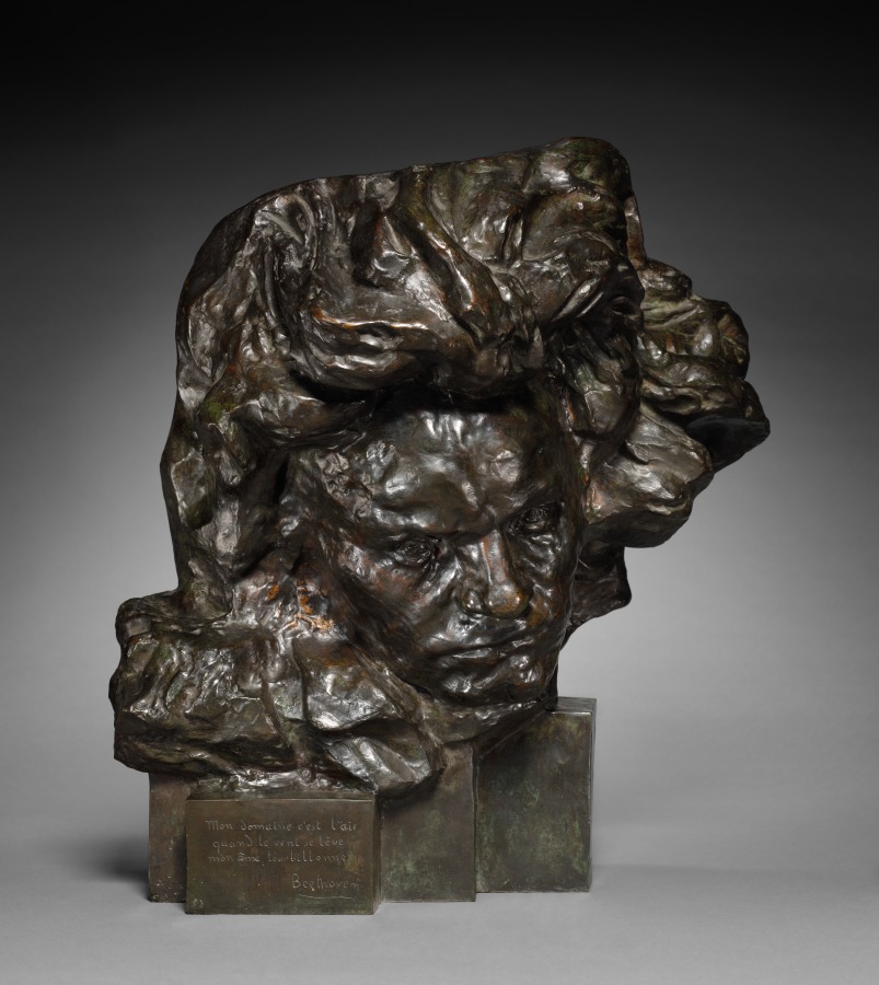 Among Bourdelle's earliest portraits, this powerful bronze captures the romantic image of the tormented genius through dramatically modeled surfaces. Bold, expressive handling of the bronze medium reflects the sculptor's developing style.