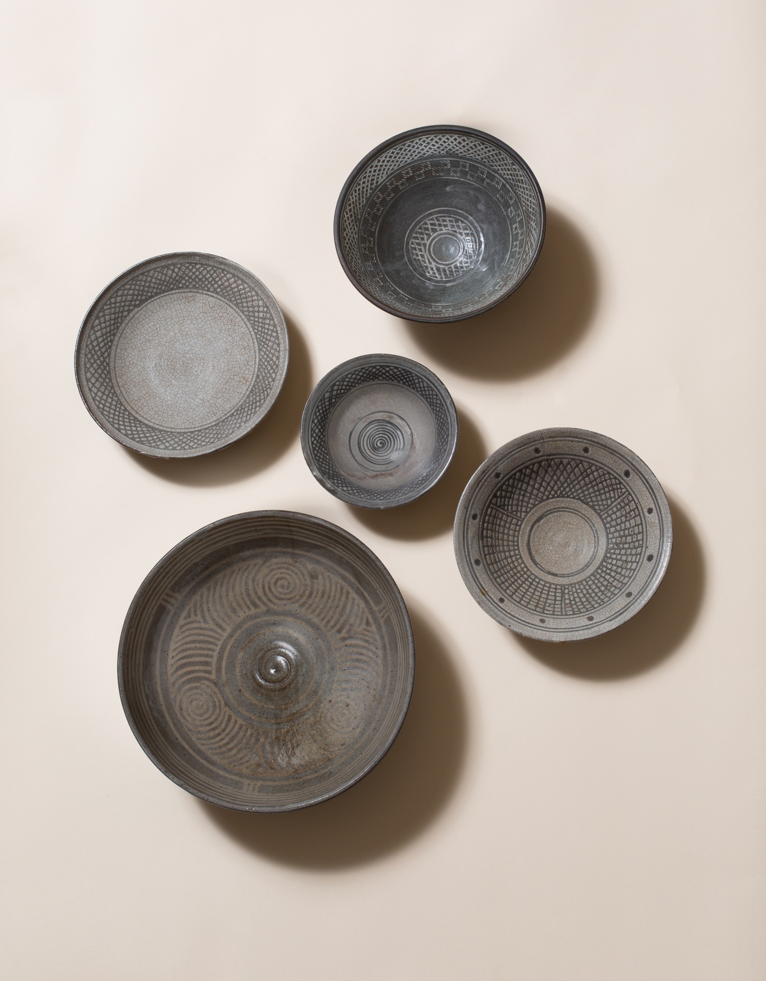 A ceramic work by Émile Lenoble comprising five cups or bowls. This piece exemplifies the artist's refined approach to functional ceramics.