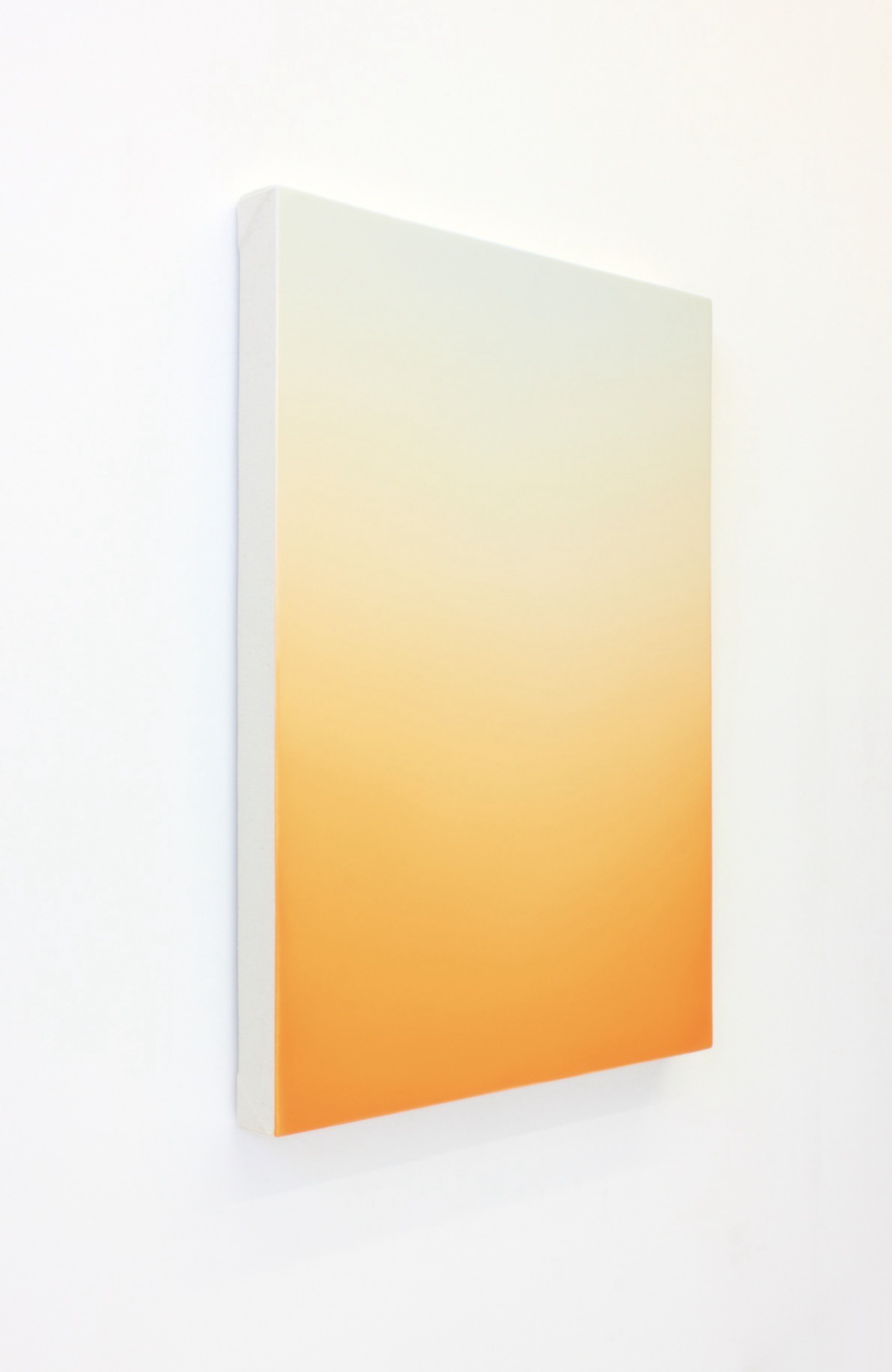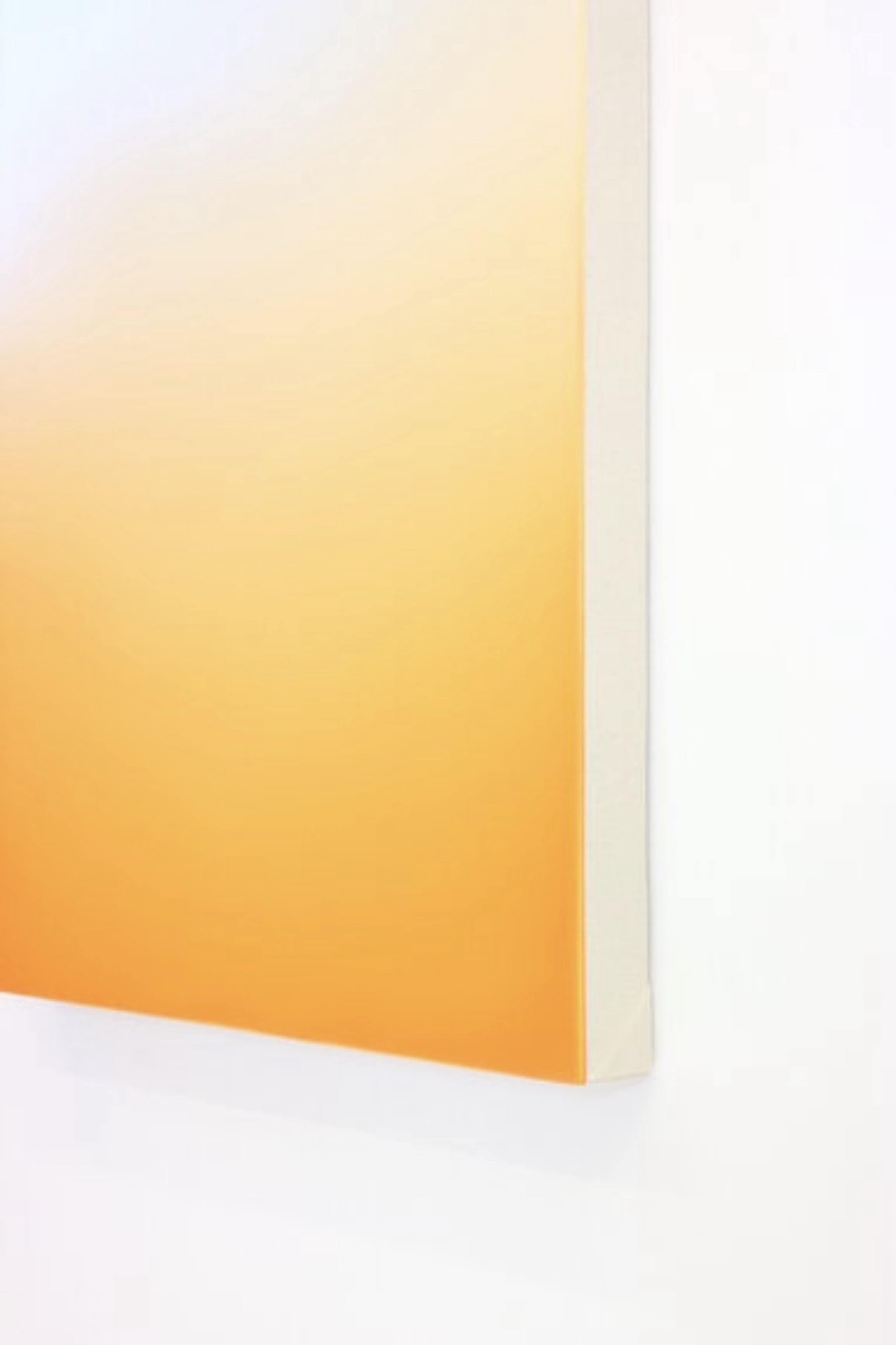 This luminous abstract painting by Eric Cruikshank presents a seamless vertical gradient dissolving from a cool pale blue white at the top into a radiant amber orange at the base. The work belongs to Cruikshank's ongoing series of color field paintings that explore atmospheric light and tonal transition with exceptional painterly precision. A unique work, hand signed by the artist and accompanied by a Certificate of Authenticity issued by the gallery, it represents a compelling example of contemporary British minimalist painting.