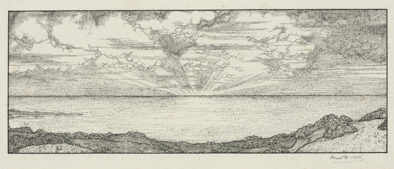 Delicate pen strokes capture the ephemeral beauty of dawn, demonstrating Haskell's mastery of linear technique in conveying atmospheric effects.