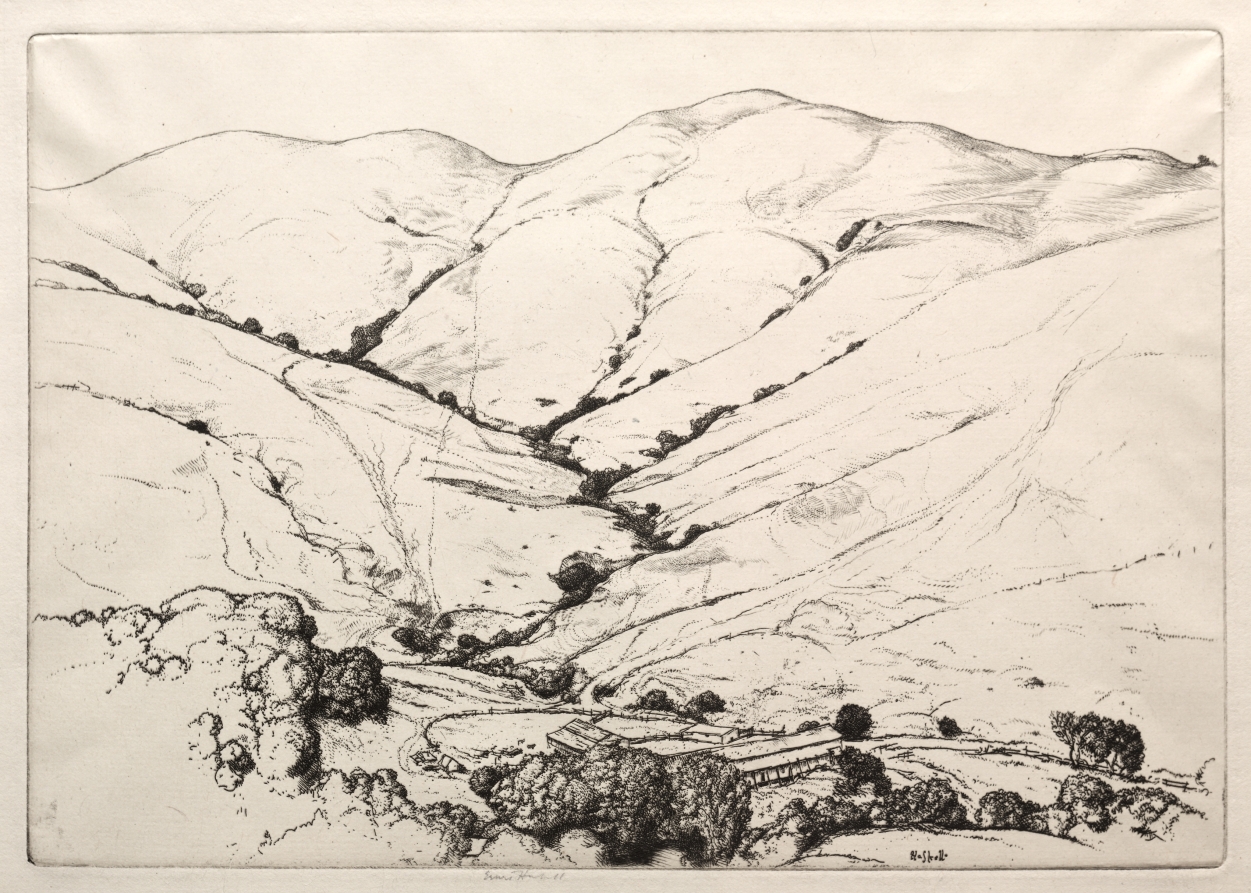 Moving beyond urban subjects, Haskell's combined etching and engraving technique creates rich tonal variations to depict the rugged American landscape.