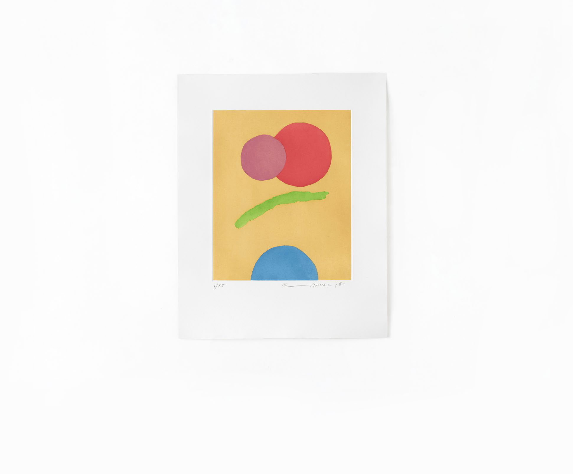 Départ explores themes of departure and transition through delicate etching techniques. The work captures a moment of movement and change, inviting contemplation on journeys both physical and psychological. Adnan's refined line work creates a sense of anticipation and possibility. The composition balances abstraction with subtle figurative elements that suggest passage and transformation. This limited edition print reflects the artist's lifelong interest in the poetic dimensions of everyday experience.
