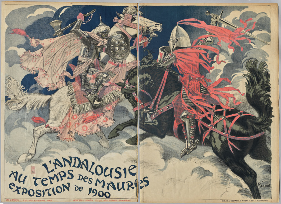 Ornate architectural details and flowing ornamental designs celebrate the cultural flowering of Moorish civilization through the lens of fin-de-siècle decorative arts.