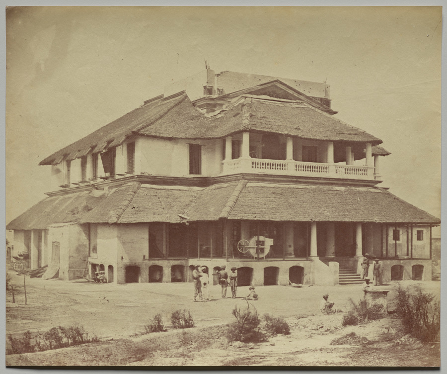 Colonial residential architecture is preserved in crisp detail through this albumen print, documenting the British presence in mid-19th century India.
