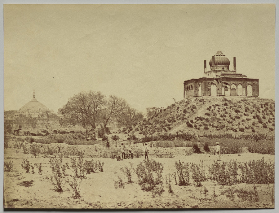 Part of Beato's groundbreaking documentation of India, this albumen print combines architectural recording with the exotic appeal that Indian subjects held for Victorian audiences.
