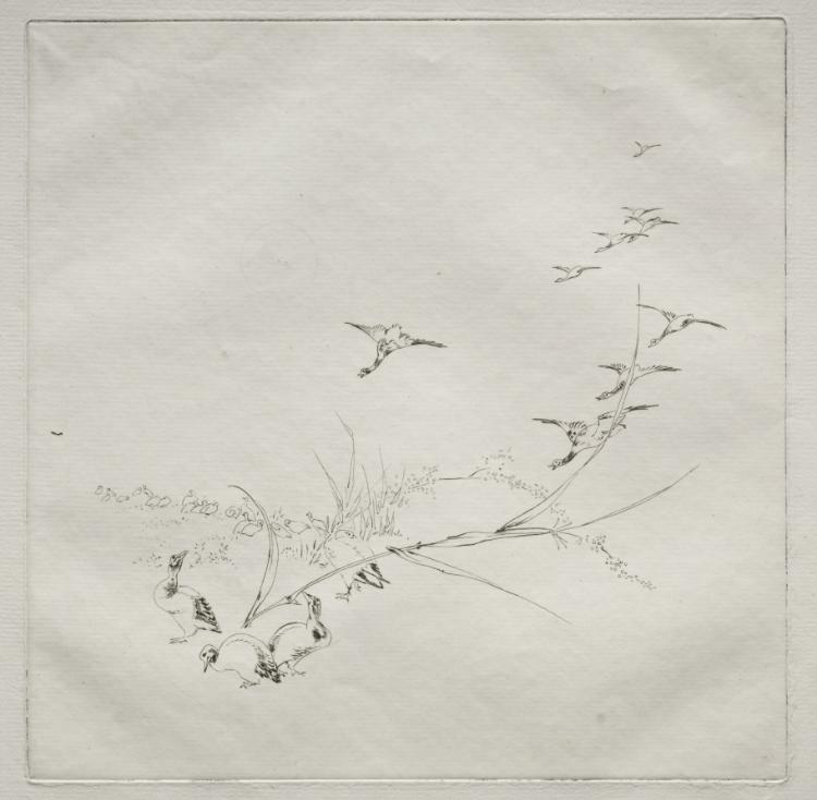 Another example from the groundbreaking Haviland series, demonstrating how Bracquemond's etching expertise transformed commercial ceramic decoration into artistic expression.
