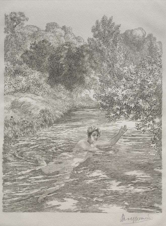 Classical subject matter is treated with the same observational precision Bracquemond brought to his natural history studies, bridging academic tradition and modern naturalism.