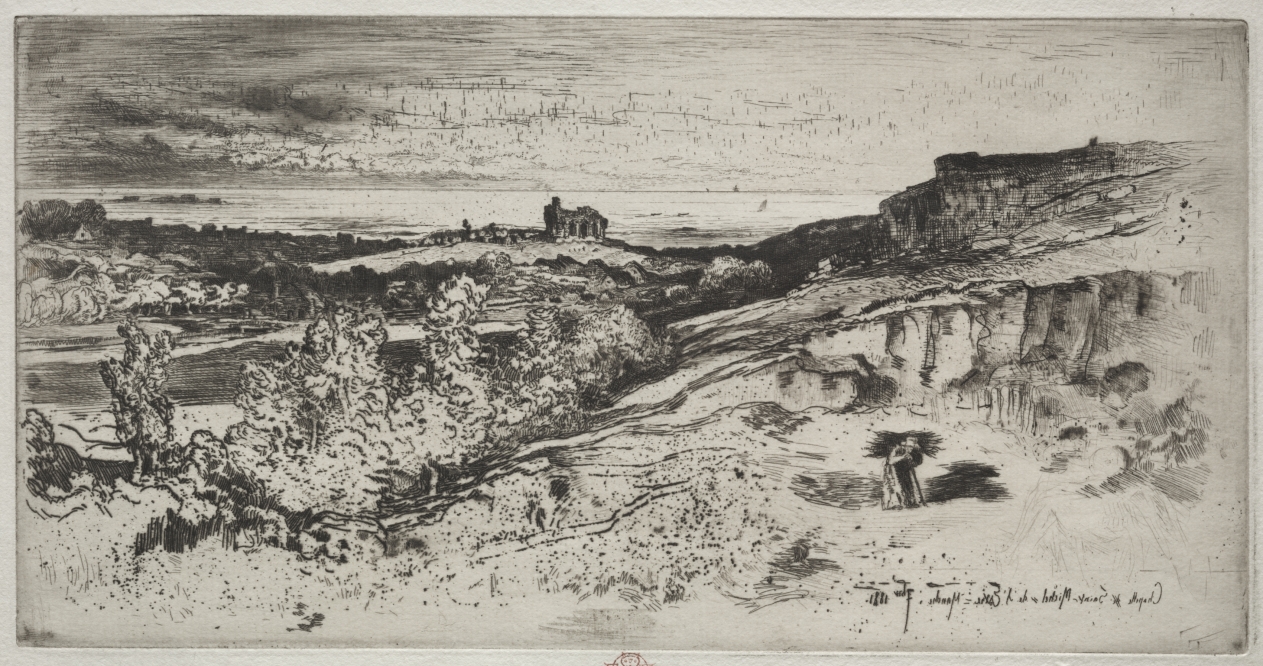Medieval Norman architecture stands majestically against a turbulent sky, exemplifying Buhot's ability to imbue architectural subjects with emotional resonance.
