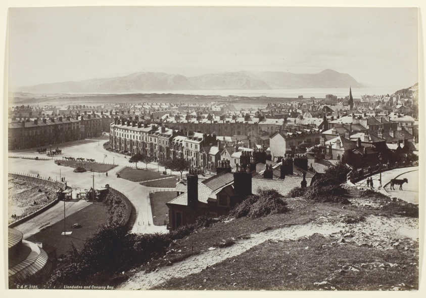 Part of Bedford's comprehensive survey of Welsh coastal resorts, this albumen print showcases the photographer's ability to balance natural landscape with emerging Victorian tourism infrastructure.
