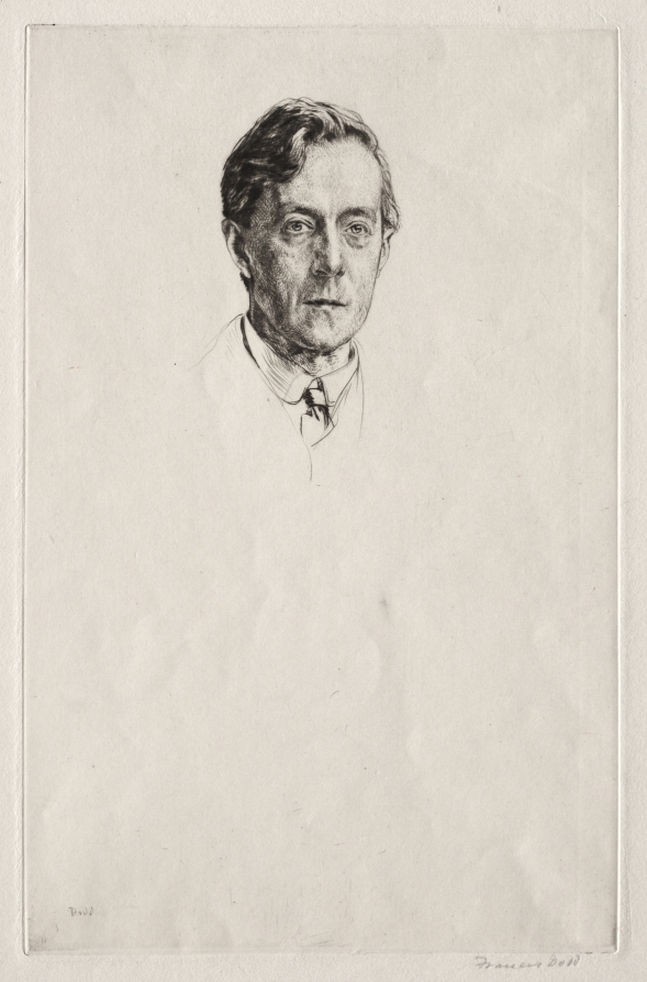 Honoring the renowned poet and art critic, this intimate drypoint portrait demonstrates Dodd's skill at capturing the intellectual intensity of literary figures through subtle tonal variations and expressive linework.
