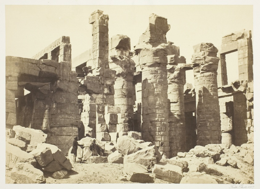 Shot in the challenging low-light conditions of an ancient Egyptian temple, this photograph showcases the technical mastery required for early architectural photography.
