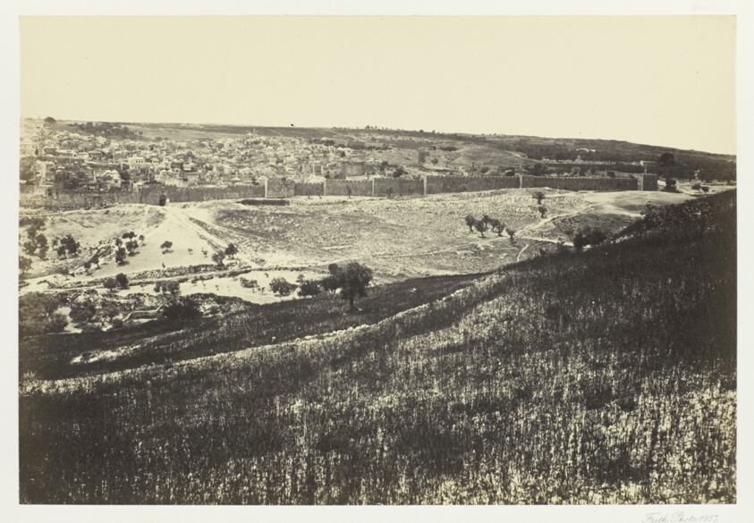 One of photography's earliest views of Jerusalem, this image from the Mount of Olives established a visual template that countless later photographers would follow. Frith's elevated perspective captures both the city's sacred geography and its 19th-century urban character.