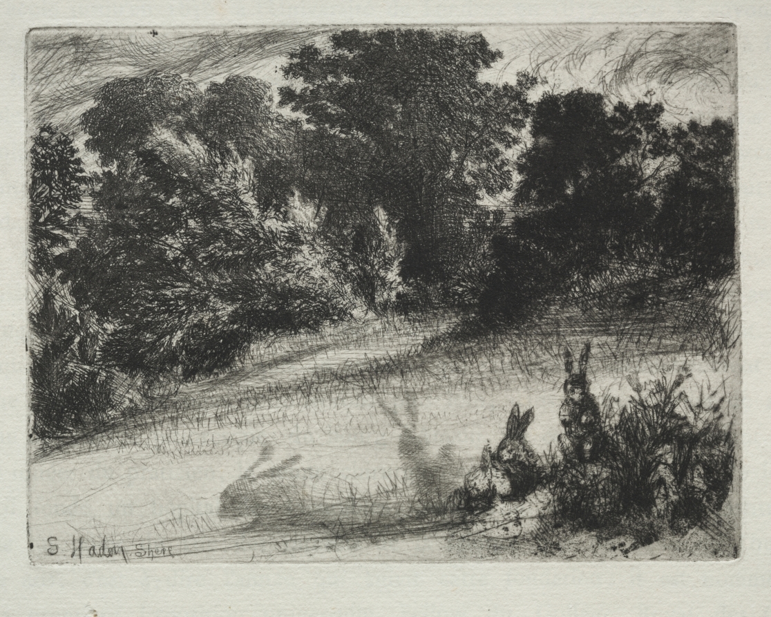 Rendered with delicate tonal gradations achieved through combined techniques, the pastoral scene exemplifies Haden's ability to capture the gentle rolling landscape of the English countryside.