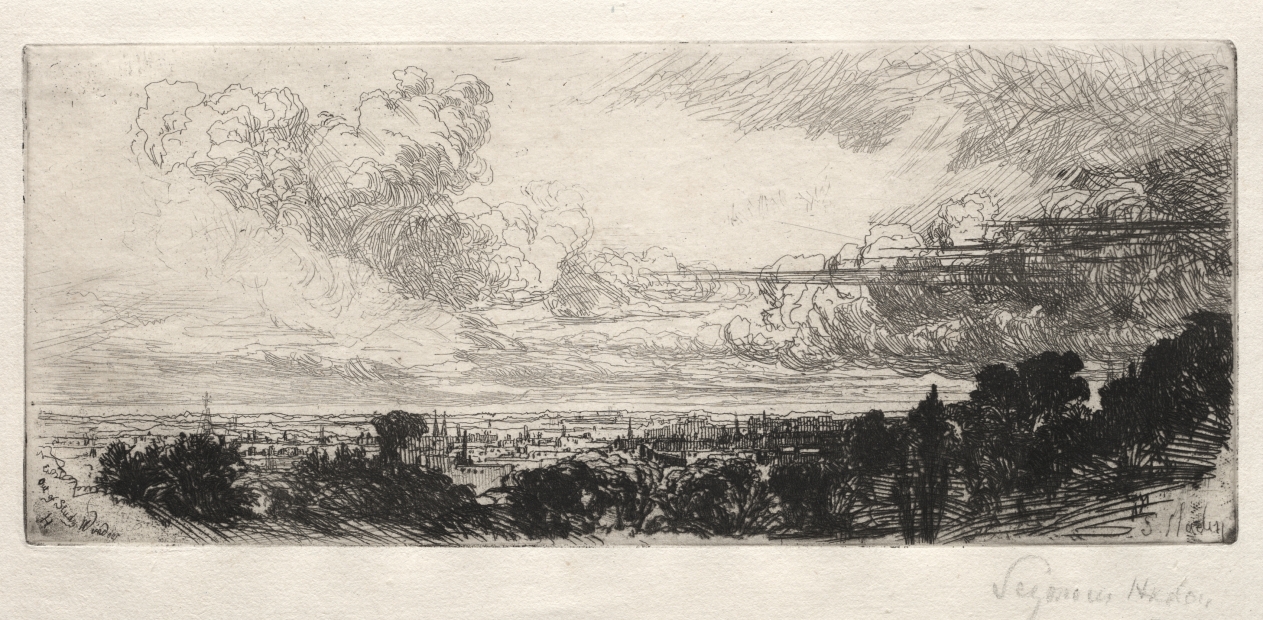Intimate domestic perspective reveals the artist's immediate surroundings through precise etched lines, characteristic of his observational approach.