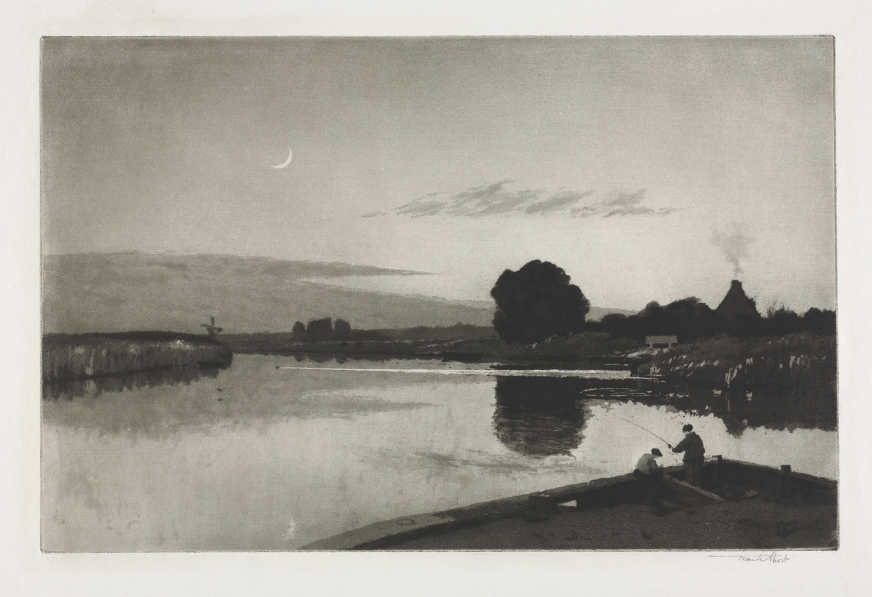 Created in the aftermath of World War I, this aquatint demonstrates Short's ability to find tranquil beauty in simple natural phenomena. The technique's soft, painterly effects perfectly capture the ephemeral quality of moonlight on landscape.