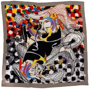 - Silk crepe de chine shawl with rolled hems, 1994, signed and dated in black ink, numbered from the edition of 650 on the accompanying certificate of authenticity, published by Tyler Graphics Ltd., New York, overall 1372 x 1372cm (54 x 54in); folded in the original red linen solander presentation box 280 x 265mm (11 x 10 1/2in), ***The original lithograph that this scarf is based on is referenced in Axsom 213., Condition, Related Lots, BACK TO AUCTION CATALOGUE, Tim Rollins (1955-2017) & Kids of