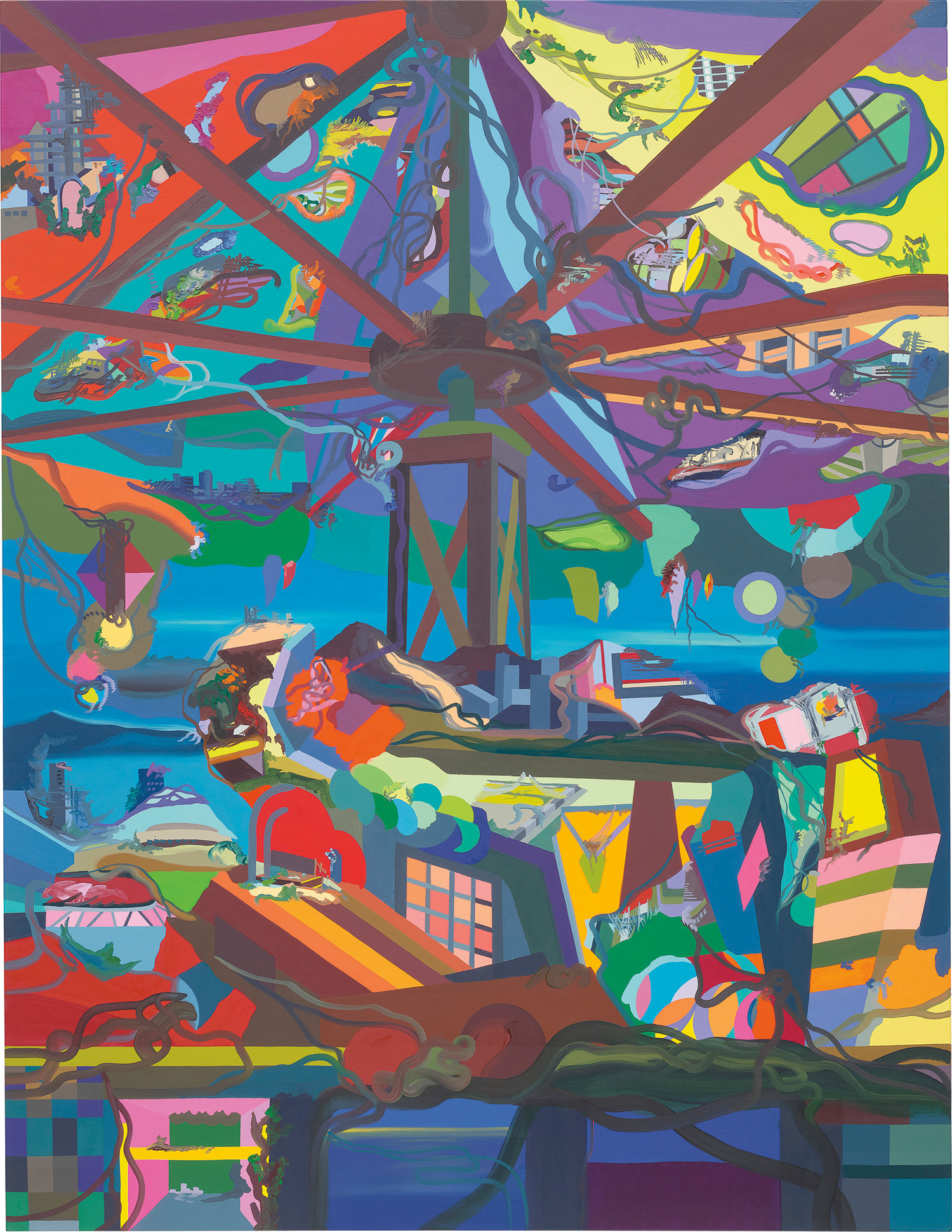 Franz Ackermann's ACRA - 50 miles is an oil painting on canvas from 2011 that explores landscape and abstraction. The title references a geographical or conceptual journey.
