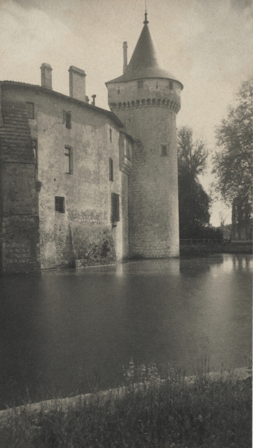Evans' platinum print technique creates luminous tonal gradations that transform the French château's stone façade into a study of light, shadow, and architectural nobility.