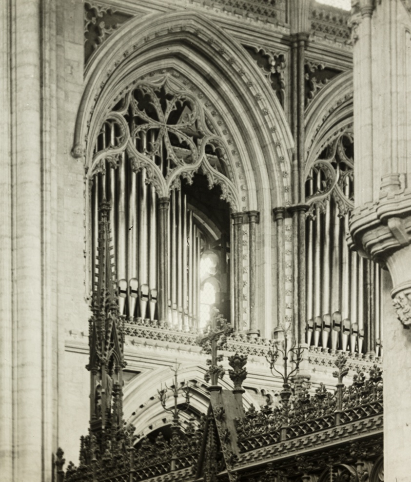 Part of Evans' systematic documentation of Ely Cathedral, the elevated gallery's Gothic arches showcase his mastery of architectural photography and ability to reveal intricate stonework details through careful lighting.